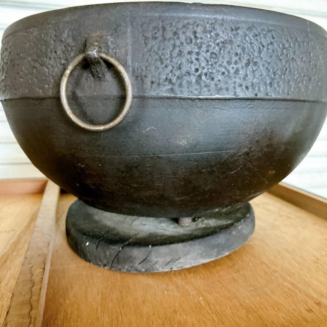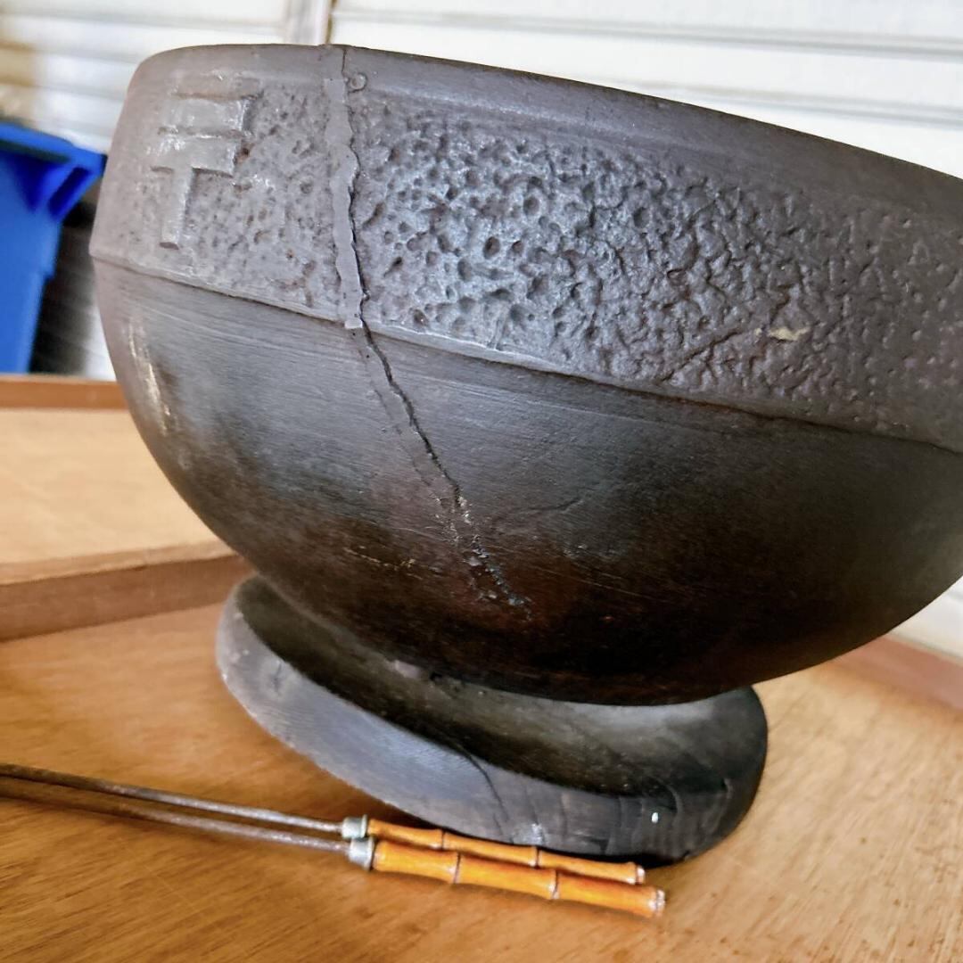 底板の反り、鉢に割れの修復跡がございますが時代を感じる素敵な火鉢です