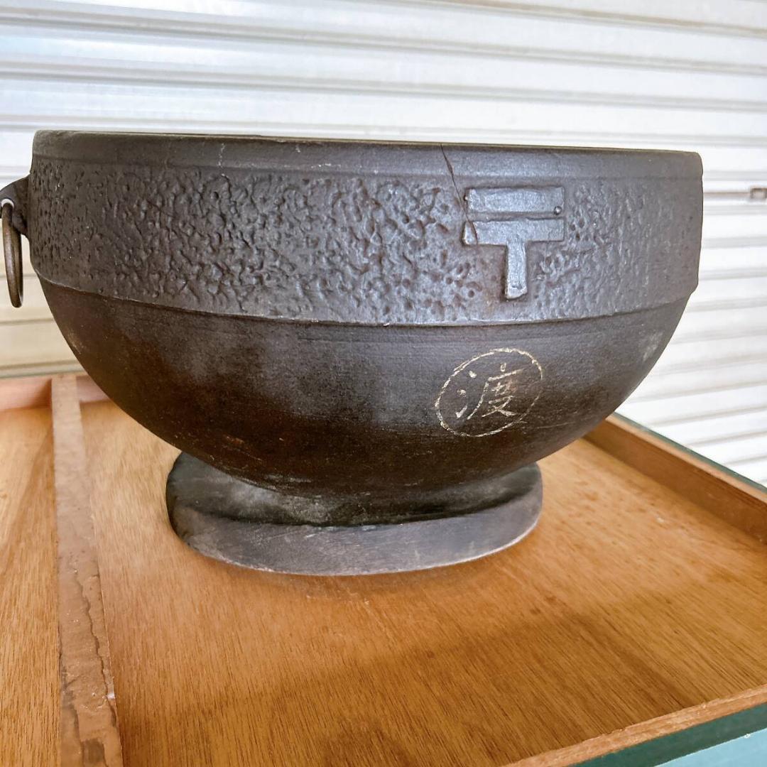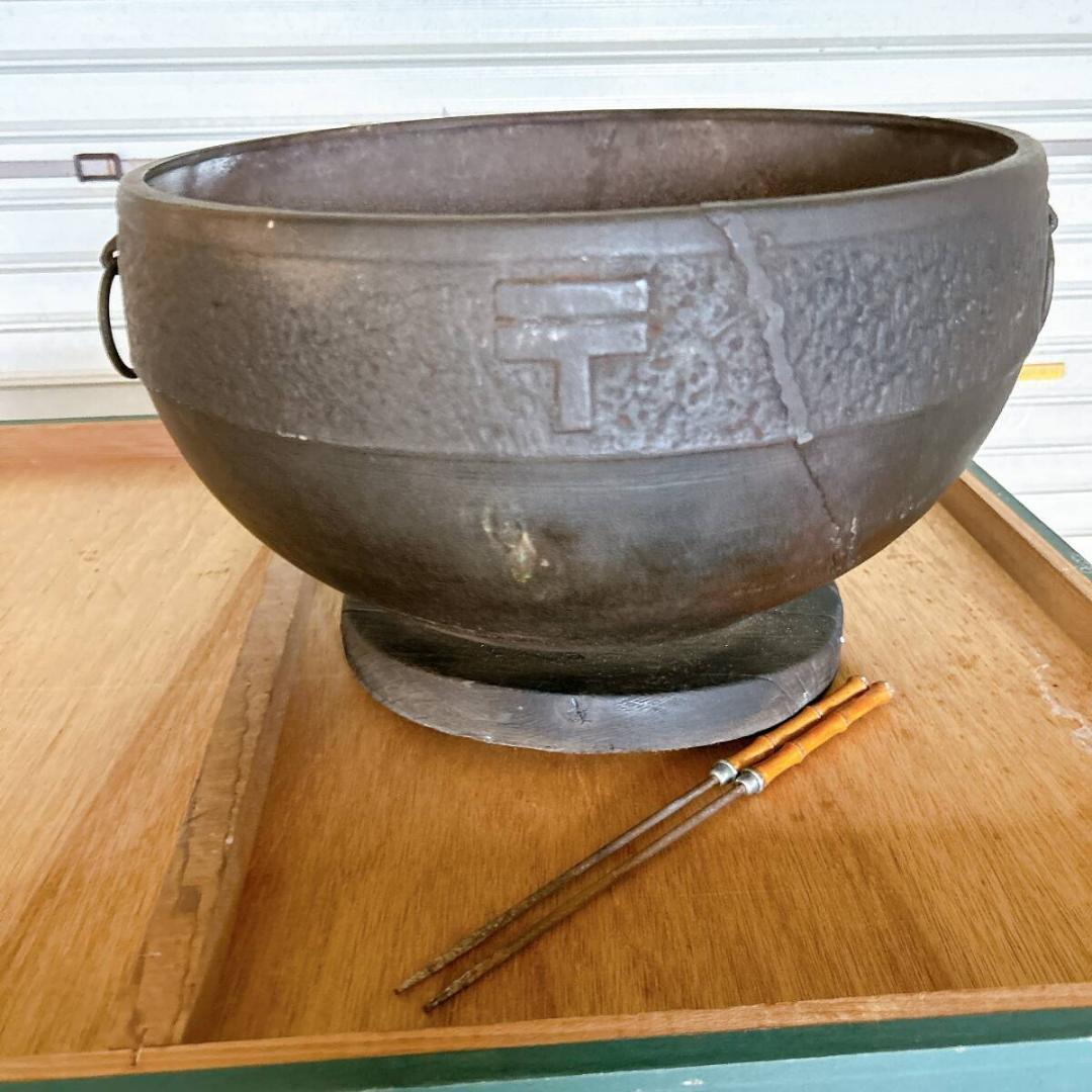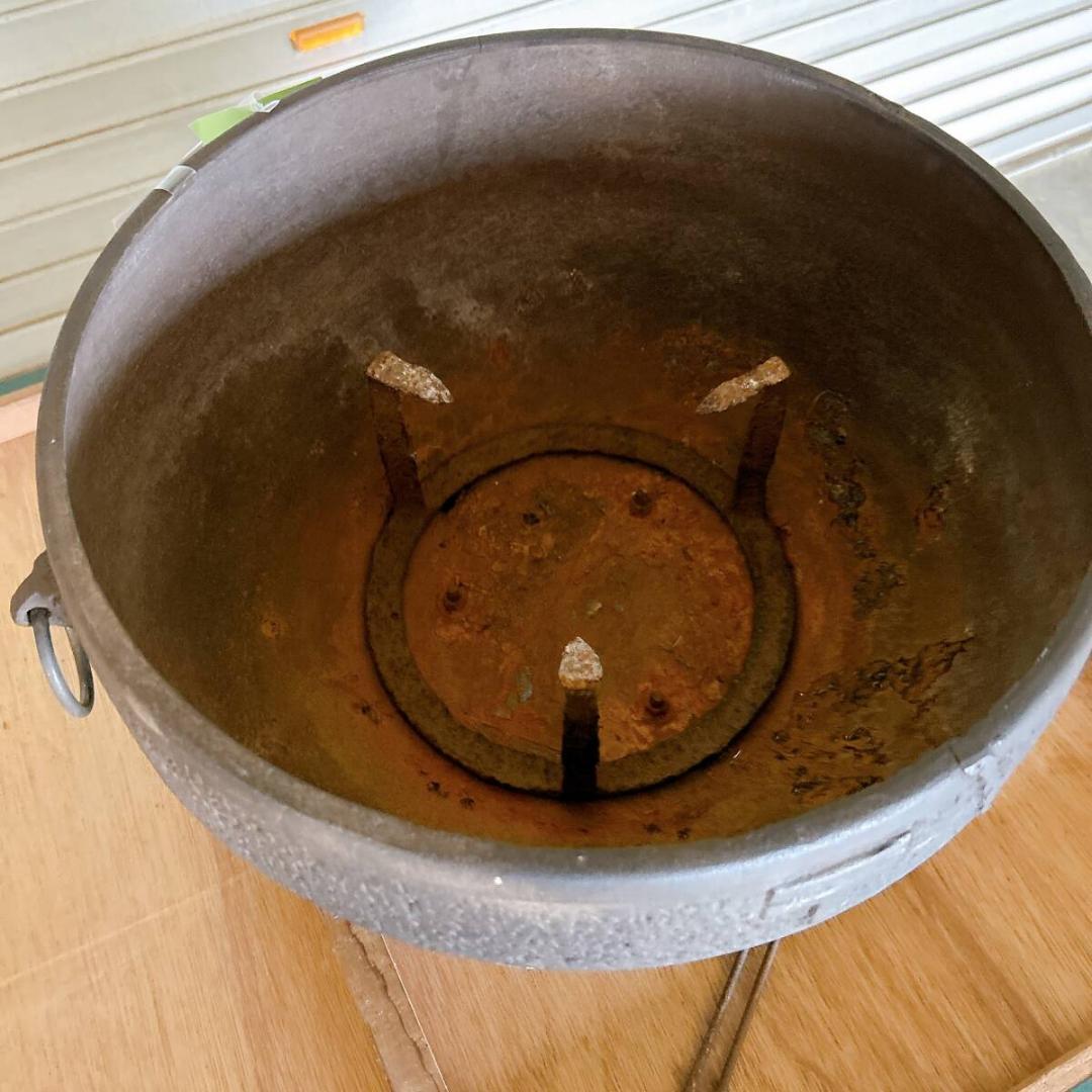 火鉢 郵便マーク入り 鉄火鉢 火箸 五徳付き 〒 郵便局 昭和レトロ
